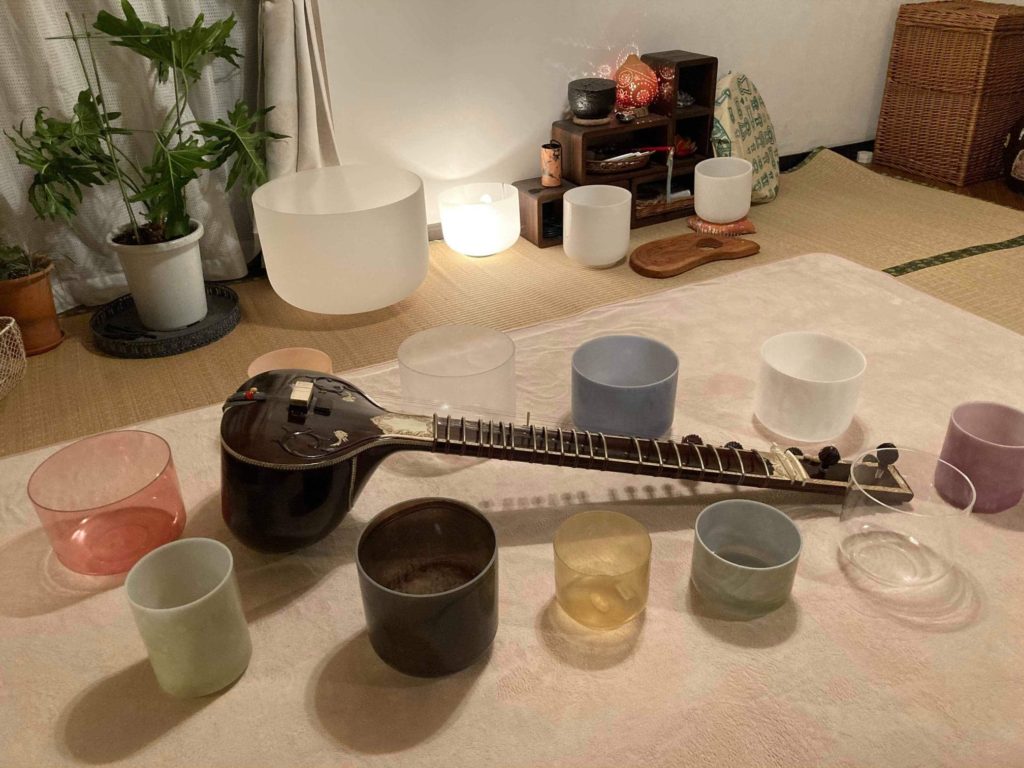 プロフィール :クリスタルボウル奏者。奈良を中心に関西各地のカフェや神社、展示会などで演奏会を展開。ライトランゲージを歌いながら奏でる。 「音」の持つ可能性をひとりでも多くの人に知って貰うべく活動中。奈良のサロンでは音のトリートメントやクリスタルボウルの個人レッスンをしています。