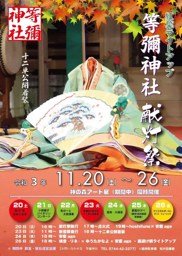 11/26(金) 等彌神社(桜井市) 紅葉ライトアップ 献灯祭
